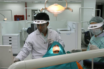 While in the second scenario's at the high-tech facility where the dentist is attended by staff, the doctor and the patient don't talk at all accept for the patient trying to remove a face cloth (which would blot out his person hood altogether for the dr., as if he were fixing a car).